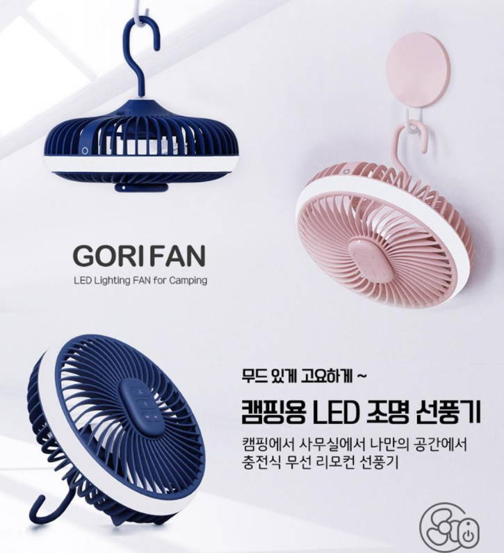 고리팬(GORIFAN) 캠핑 선풍기 어디든 걸수 있게 고리가 있어 캠핑에서 사무실에서 나만의 공간에서 사용할 수 있는 충전식 무선 리모컨 선풍기 입니다.